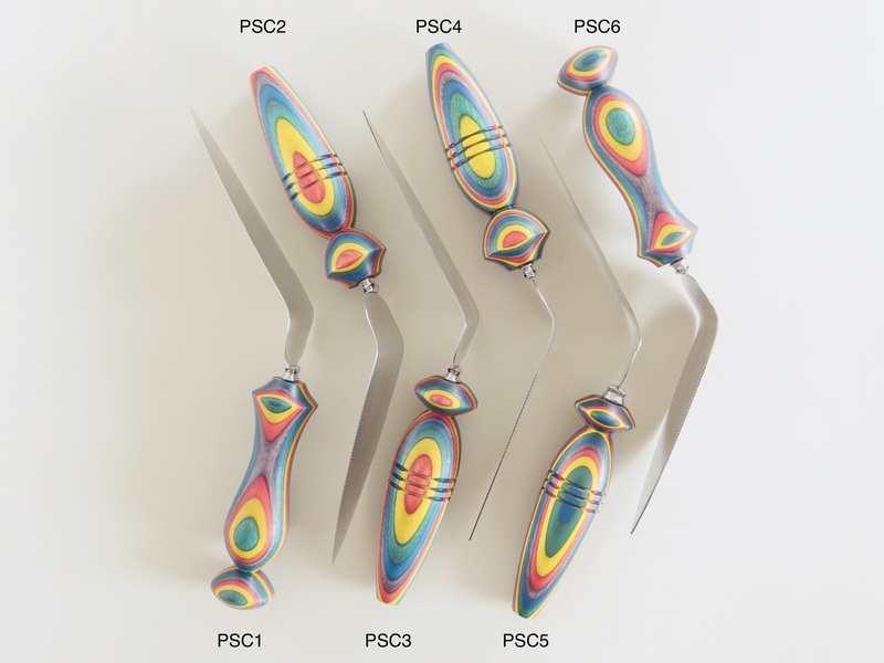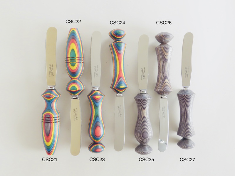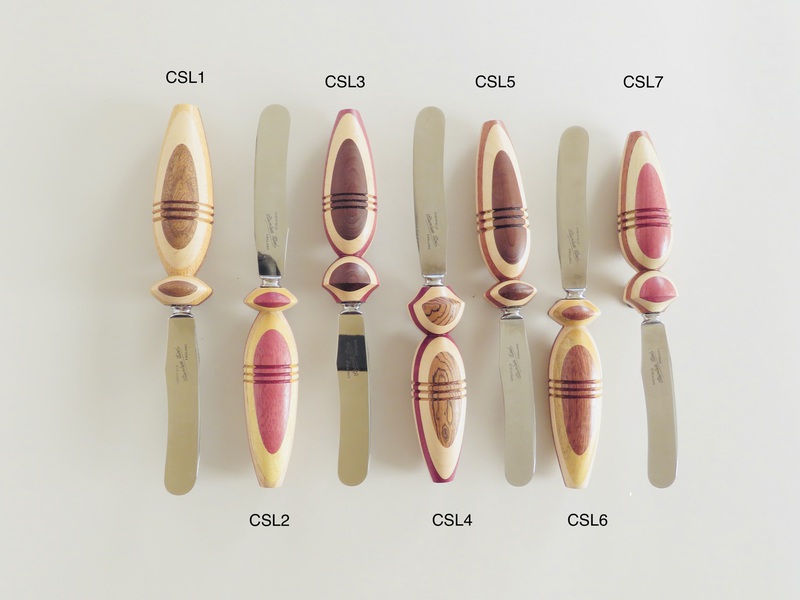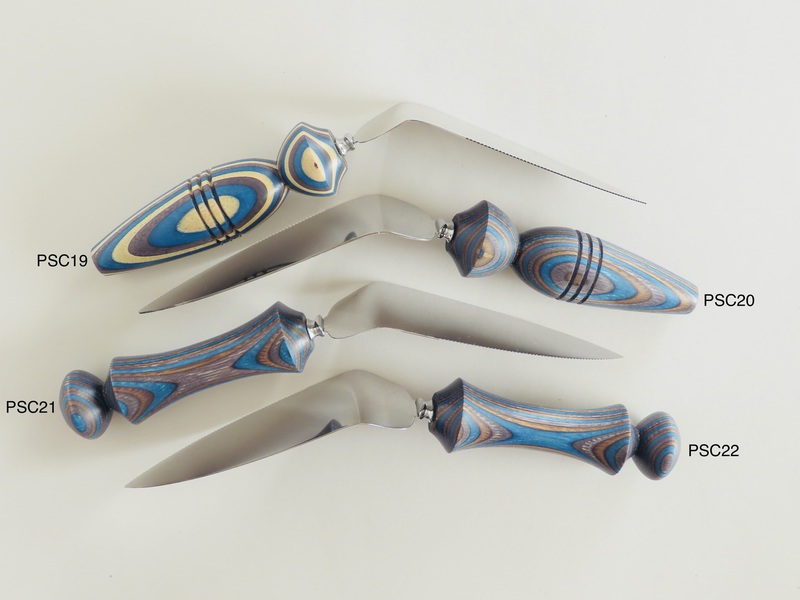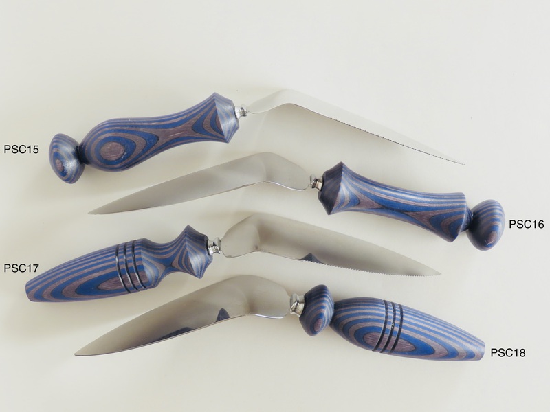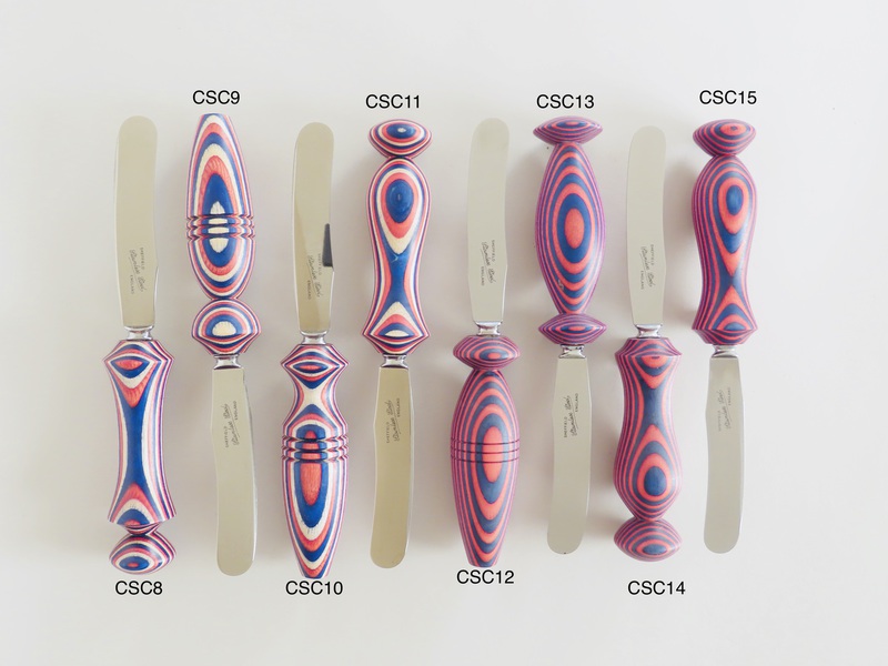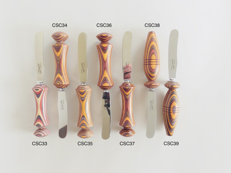 Laminated Woods: (the last two photos CSL1-14)These handles are made from laminated hardwoods, individually hand-turned on a lathe. The woods have not been